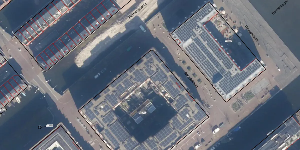 Het perceel waarop Revaleiland 488 staat heeft een oppervlakte van 3795 m². Dit is een zeer groot perceel. De perceeloppervlakte wordt geregistreerd door het Kadaster. Gedetailleerde informatie over de maten van dit perceel kunt u vinden in het rapport Kadastrale kaart met maatvoering van Revaleiland 488.