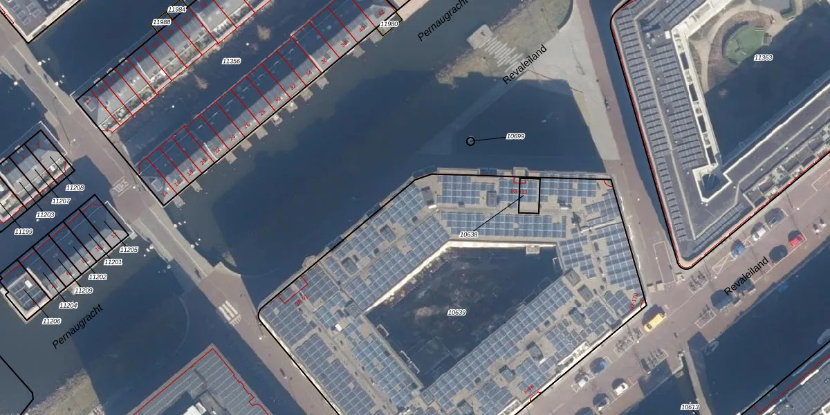 Het perceel waarop Revaleiland 63 staat heeft een oppervlakte van 4366 m². Dit is een zeer groot perceel. De perceeloppervlakte wordt geregistreerd door het Kadaster. Gedetailleerde informatie over de maten van dit perceel kunt u vinden in het rapport Kadastrale kaart met maatvoering van Revaleiland 63.