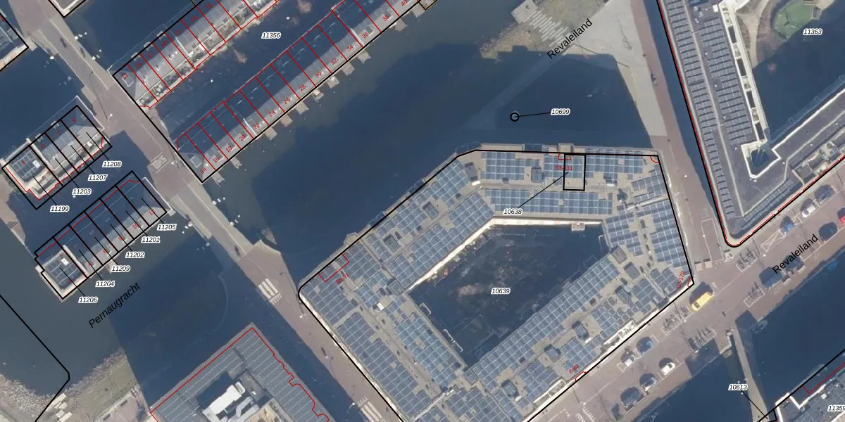 Het perceel waarop Revaleiland 69 staat heeft een oppervlakte van 4366 m². Dit is een zeer groot perceel. De perceeloppervlakte wordt geregistreerd door het Kadaster. Gedetailleerde informatie over de maten van dit perceel kunt u vinden in het rapport Kadastrale kaart met maatvoering van Revaleiland 69.