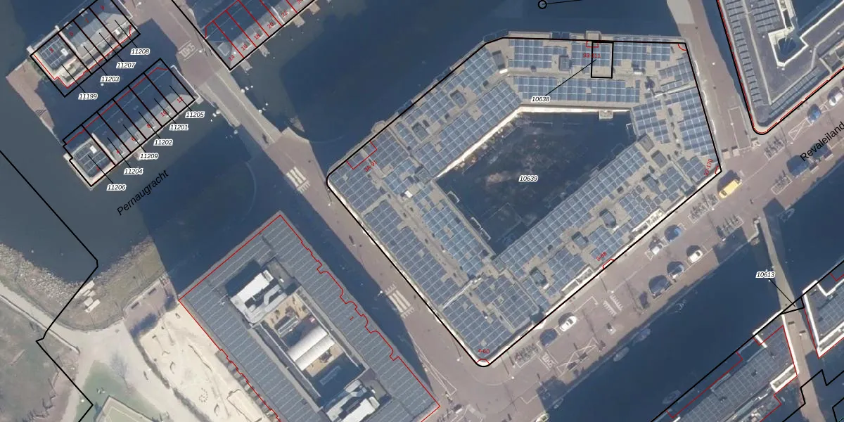 Het perceel waarop Revaleiland 7 staat heeft een oppervlakte van 4366 m². Dit is een zeer groot perceel. De perceeloppervlakte wordt geregistreerd door het Kadaster. Gedetailleerde informatie over de maten van dit perceel kunt u vinden in het rapport Kadastrale kaart met maatvoering van Revaleiland 7.