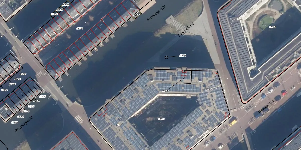 Het perceel waarop Revaleiland 73 staat heeft een oppervlakte van 4366 m². Dit is een zeer groot perceel. De perceeloppervlakte wordt geregistreerd door het Kadaster. Gedetailleerde informatie over de maten van dit perceel kunt u vinden in het rapport Kadastrale kaart met maatvoering van Revaleiland 73.