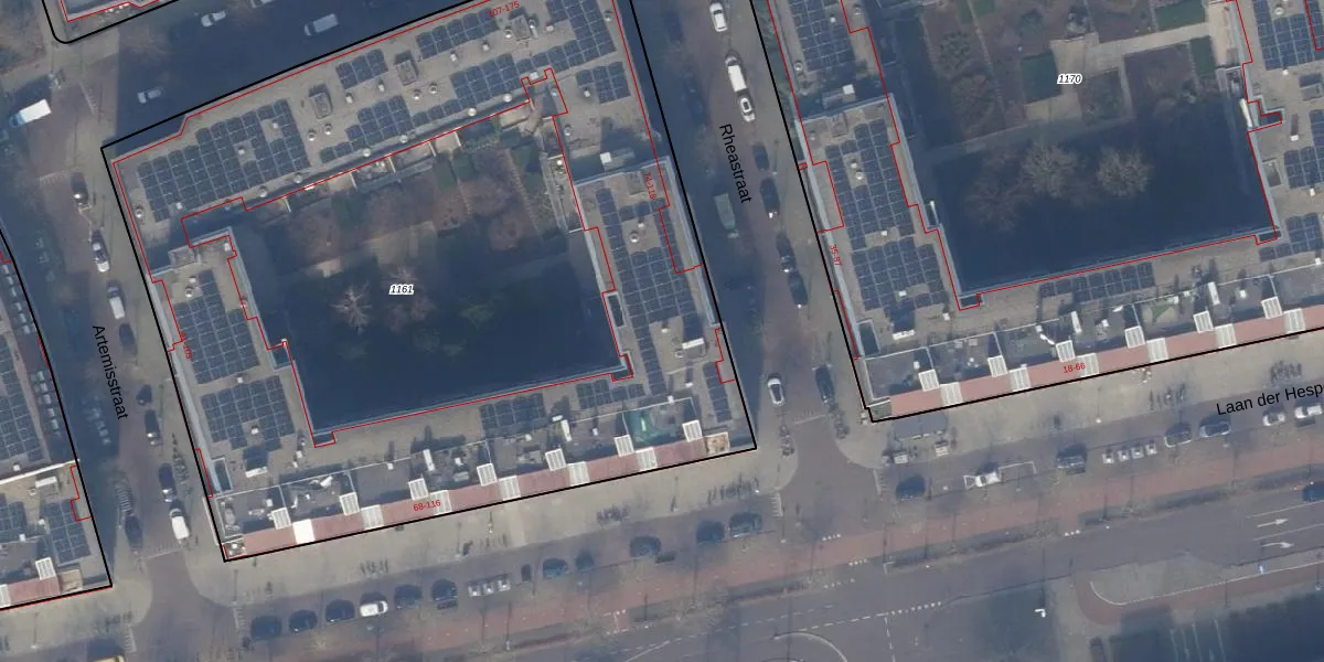 Het perceel waarop Rheastraat 112 staat heeft een oppervlakte van 5945 m². Dit is een zeer groot perceel. De perceeloppervlakte wordt geregistreerd door het Kadaster. Gedetailleerde informatie over de maten van dit perceel kunt u vinden in het rapport Kadastrale kaart met maatvoering van Rheastraat 112.