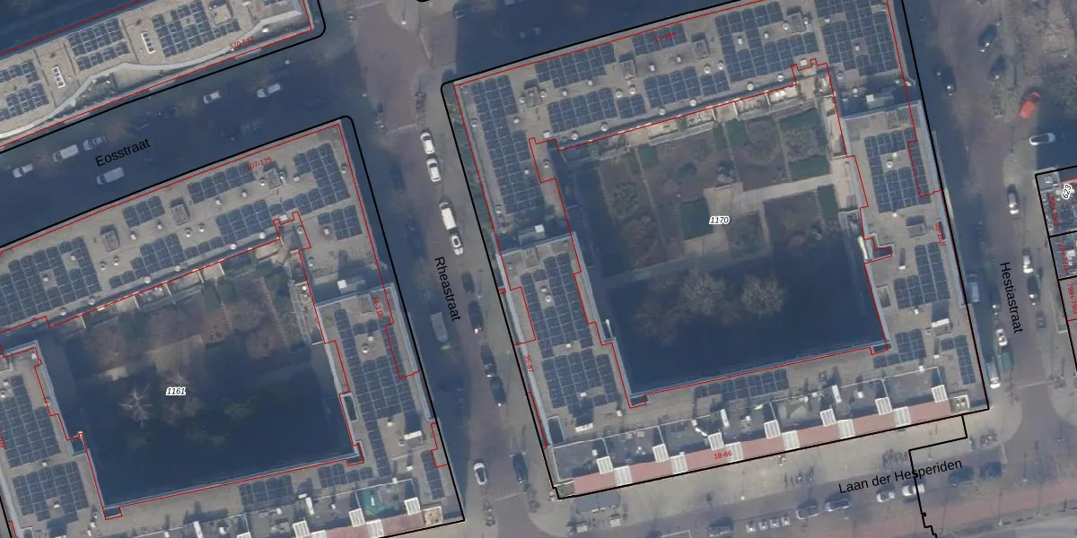 Het perceel waarop Rheastraat 49 staat heeft een oppervlakte van 7035 m². Dit is een zeer groot perceel. De perceeloppervlakte wordt geregistreerd door het Kadaster. Gedetailleerde informatie over de maten van dit perceel kunt u vinden in het rapport Kadastrale kaart met maatvoering van Rheastraat 49.