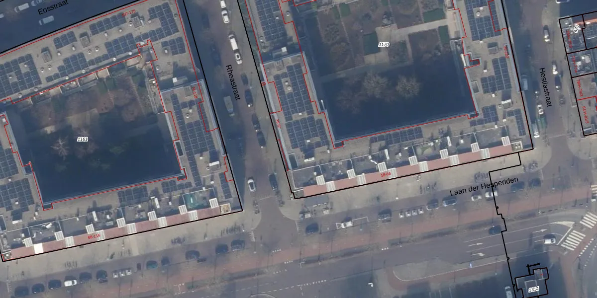Het perceel waarop Rheastraat 69 staat heeft een oppervlakte van 7035 m². Dit is een zeer groot perceel. De perceeloppervlakte wordt geregistreerd door het Kadaster. Gedetailleerde informatie over de maten van dit perceel kunt u vinden in het rapport Kadastrale kaart met maatvoering van Rheastraat 69.