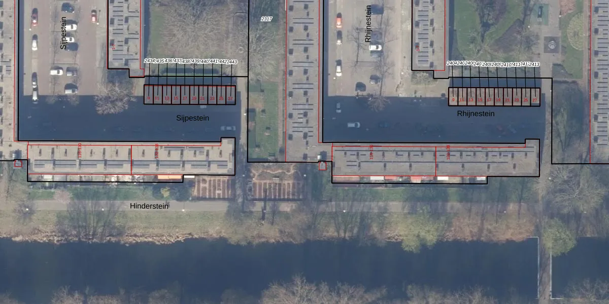 Het perceel waarop Rhijnestein 86 staat heeft een oppervlakte van 2706 m². Dit is een zeer groot perceel. De perceeloppervlakte wordt geregistreerd door het Kadaster. Gedetailleerde informatie over de maten van dit perceel kunt u vinden in het rapport Kadastrale kaart met maatvoering van Rhijnestein 86.