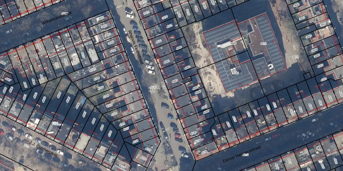 Het perceel waarop het adres ligt is ASD16-T-4483. De afkorting 'ASD16' staat voor kadastrale gemeente Amsterdam. Het perceel is 81 m² groot. Dat is kleiner dan de gemiddelde perceeloppervlakte in Amsterdam, dat op 245,33 m² ligt. Het grootste perceel in de kadastrale gemeente is 3,3 ha. Het kleinste perceel heeft een oppervlakte van 0 m². Op het perceel zijn 4 adressen aanwezig. De huidige grenzen van het perceel zijn digitaal in de Basisregistratie Kadaster (BRK) geregistreerd op 10-01-2007.