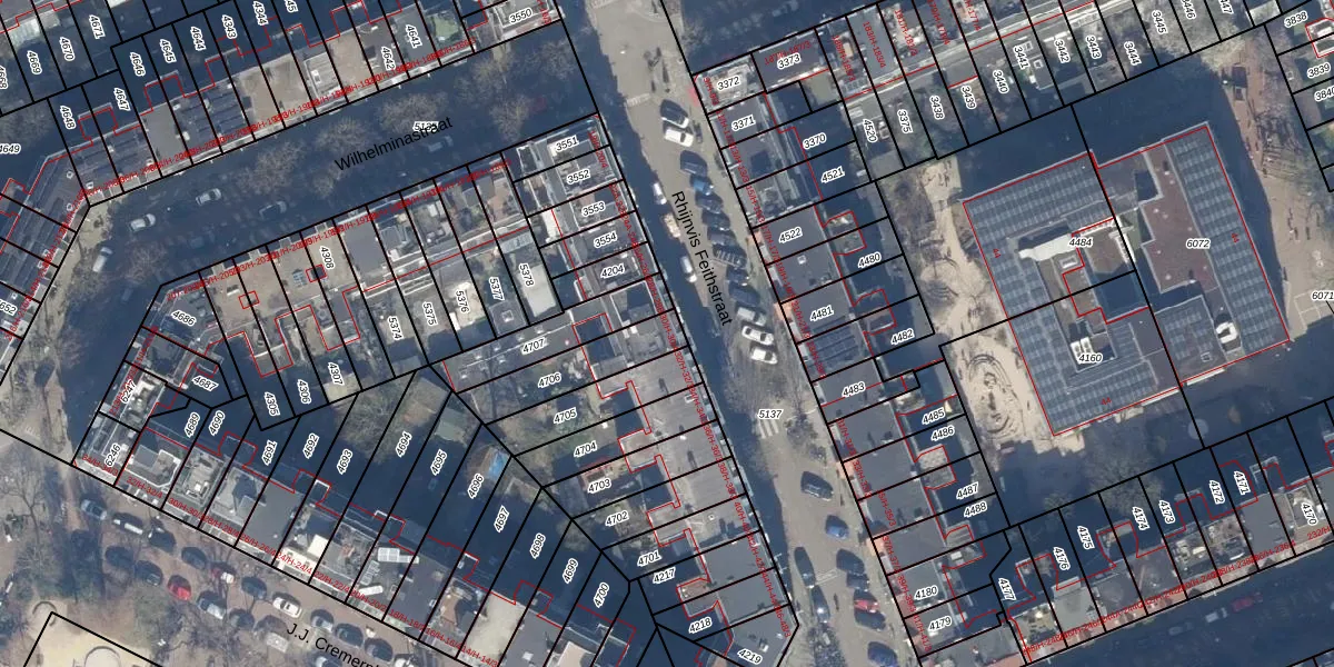 Het perceel waarop het adres ligt is ASD16-T-4706. De afkorting 'ASD16' staat voor kadastrale gemeente Amsterdam. Het perceel is 197 m² groot. Dat is kleiner dan de gemiddelde perceeloppervlakte in Amsterdam, dat op 245,33 m² ligt. Het kleinste perceel in de kadastrale gemeente is 0 m² groot. De grootste perceeloppervlakte is 3,3 ha. Op het perceel liggen in totaal 5 adressen. In de Basisregistratie Kadaster (BRK) werden de grenzen van het perceel geregistreerd op 10-01-2007.