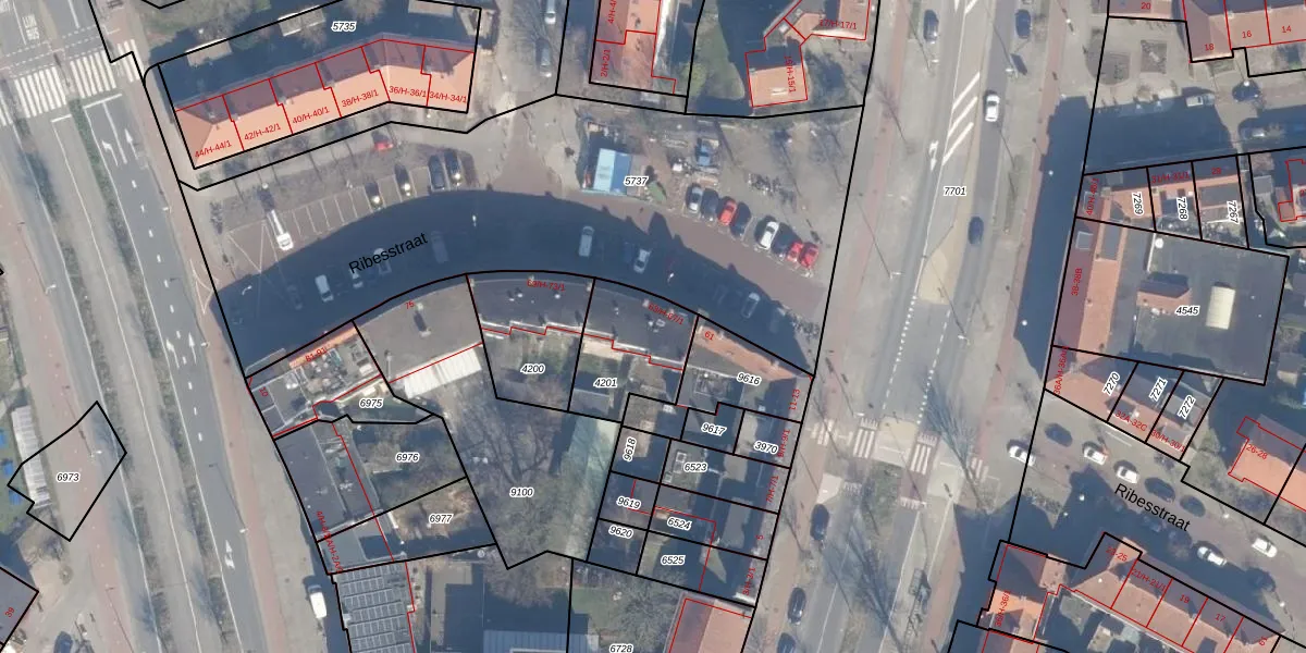 Ribesstraat 65 is gelegen op kadastraal perceel ASD07K4201. Deze kadastrale aanduiding is uniek en wordt gebruikt door het Kadaster om eigendomsrechten en andere zakelijke rechten vast te leggen. Het perceel maakt onderdeel uit van de kadastrale gemeente Amsterdam.