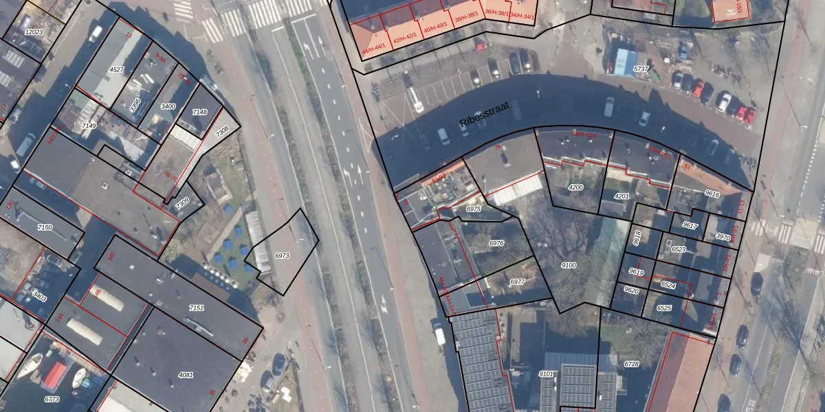 Ribesstraat 91 is gelegen op kadastraal perceel ASD07K6975. Deze kadastrale aanduiding is uniek en wordt gebruikt door het Kadaster om eigendomsrechten en andere zakelijke rechten vast te leggen. Het perceel maakt onderdeel uit van de kadastrale gemeente Amsterdam.