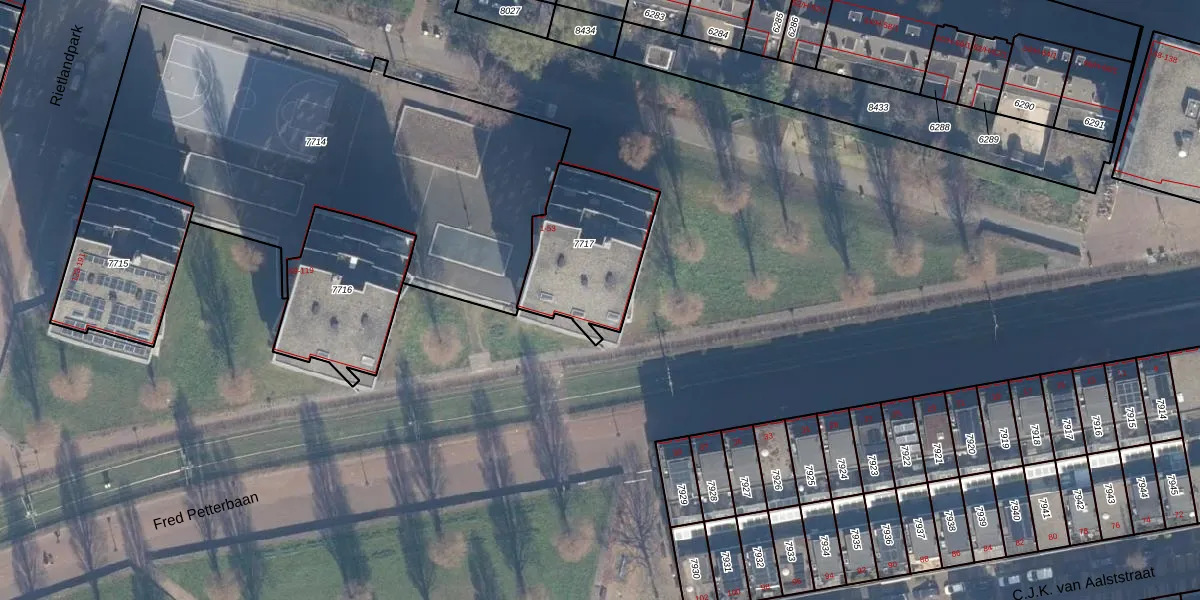 Het perceel waarop Rietlandpark 39 staat heeft een oppervlakte van 450 m². Dit is een groot perceel. De perceeloppervlakte wordt geregistreerd door het Kadaster. Gedetailleerde informatie over de maten van dit perceel kunt u vinden in het rapport Kadastrale kaart met maatvoering van Rietlandpark 39.