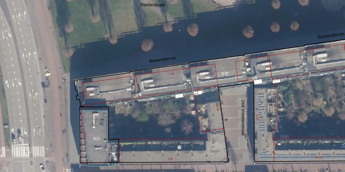 Rietlandterras 18 is gelegen op kadastraal perceel ASD02A7807. Deze kadastrale aanduiding is uniek en wordt gebruikt door het Kadaster om eigendomsrechten en andere zakelijke rechten vast te leggen. Het perceel maakt onderdeel uit van de kadastrale gemeente Amsterdam.