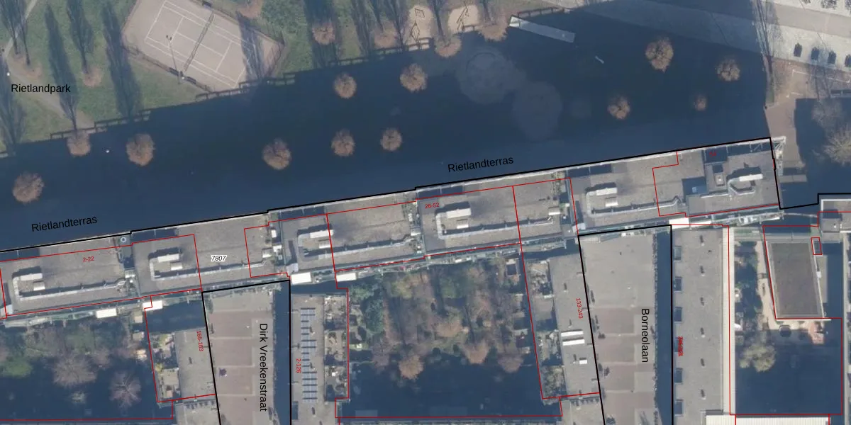Rietlandterras 40 is gelegen op kadastraal perceel ASD02A7807. Deze kadastrale aanduiding is uniek en wordt gebruikt door het Kadaster om eigendomsrechten en andere zakelijke rechten vast te leggen. Het perceel maakt onderdeel uit van de kadastrale gemeente Amsterdam.