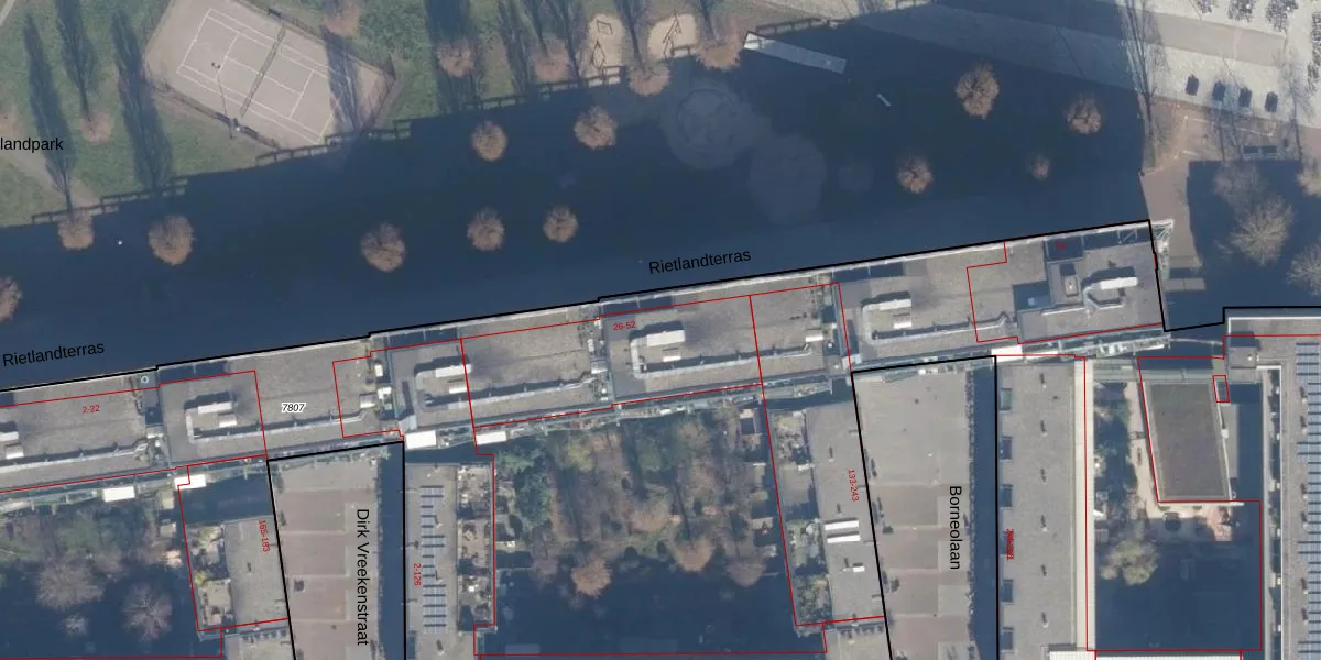 Rietlandterras 46 is gelegen op kadastraal perceel ASD02A7807. Deze kadastrale aanduiding is uniek en wordt gebruikt door het Kadaster om eigendomsrechten en andere zakelijke rechten vast te leggen. Het perceel maakt onderdeel uit van de kadastrale gemeente Amsterdam.