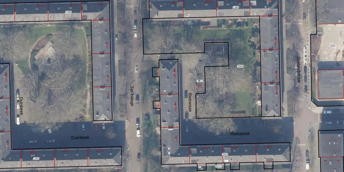 Rietnesse 13-H is gelegen op kadastraal perceel ASD30AK3591. Deze kadastrale aanduiding is uniek en wordt gebruikt door het Kadaster om eigendomsrechten en andere zakelijke rechten vast te leggen. Het perceel maakt onderdeel uit van de kadastrale gemeente Amsterdam.