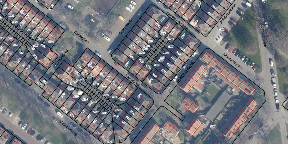 Gebruik de zoekbalk of klik op een perceel voor informatie over de adressen binnen dit perceel.