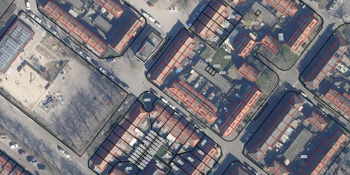 Het perceel waarop Rigelstraat 28 staat heeft een oppervlakte van 4733 m². Dit is een zeer groot perceel. De perceeloppervlakte wordt geregistreerd door het Kadaster. Gedetailleerde informatie over de maten van dit perceel kunt u vinden in het rapport Kadastrale kaart met maatvoering van Rigelstraat 28.
