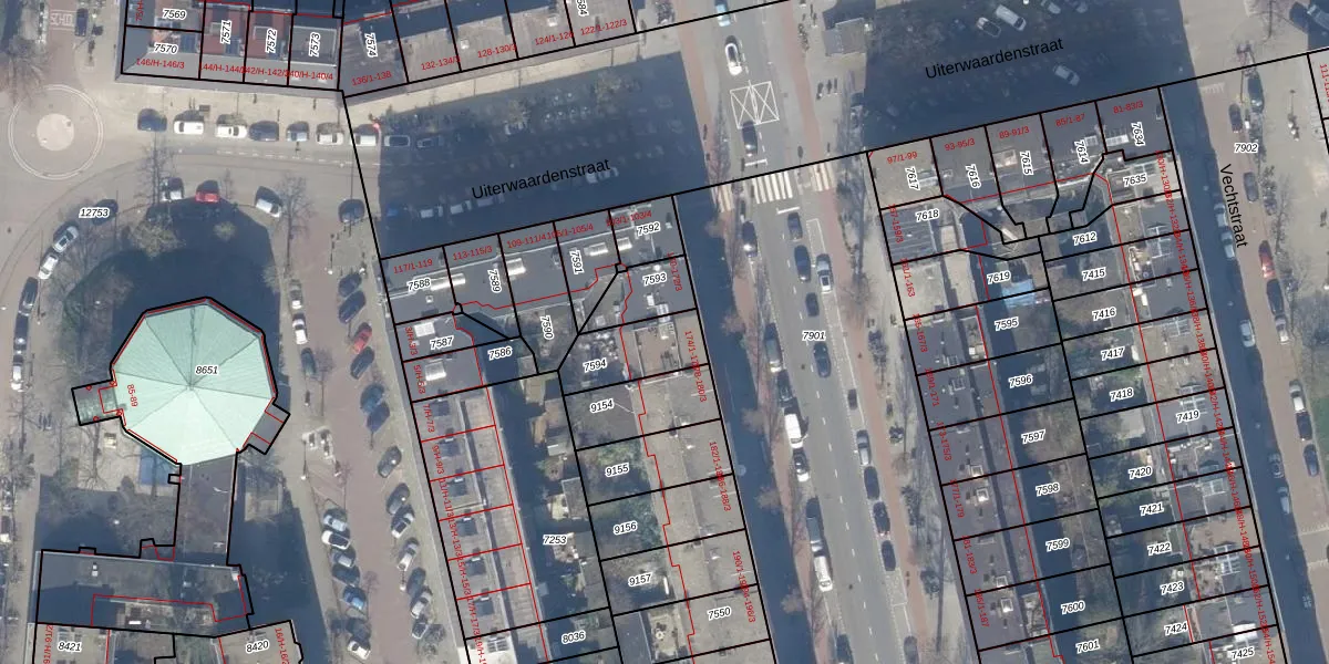 Het perceel waarop het adres ligt is ASD18-V-7594. De afkorting 'ASD18' staat voor kadastrale gemeente Amsterdam. Het perceel is kleiner dan gemiddeld in Amsterdam. Het perceel is 181 m² groot, terwijl het gemiddelde ligt op 558,8 m². De grootste perceeloppervlakte in de kadastrale gemeente is 12,5 ha. De kleinste oppervlakte bedraagt 0 m². Er zijn 5 adressen aanwezig op het perceel. In de Basisregistratie Kadaster (BRK) werden de grenzen van het perceel geregistreerd op 17-11-2006.