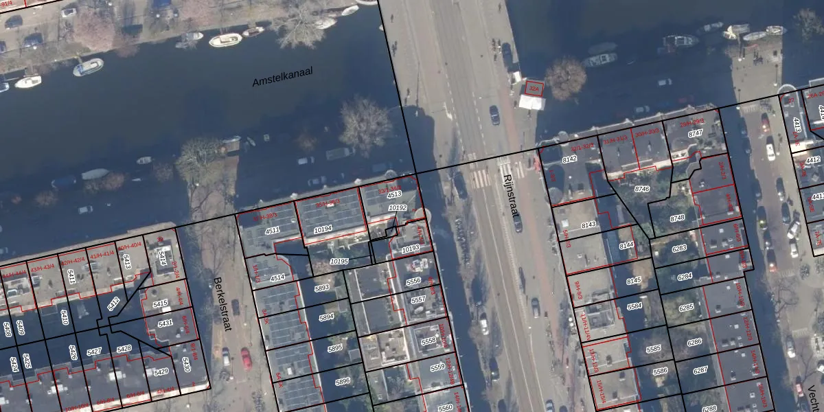 Het perceel waarop het adres ligt is ASD18-V-4513. De afkorting 'ASD18' staat voor kadastrale gemeente Amsterdam. Het perceel is 173 m² groot. Dat is kleiner dan de gemiddelde perceeloppervlakte in Amsterdam, dat op 558,8 m² ligt. Het grootste perceel in de kadastrale gemeente is 12,5 ha. Het kleinste perceel heeft een oppervlakte van 0 m². Op het perceel liggen in totaal 8 adressen. In de Basisregistratie Kadaster (BRK) werden de grenzen van het perceel geregistreerd op 29-09-2006.