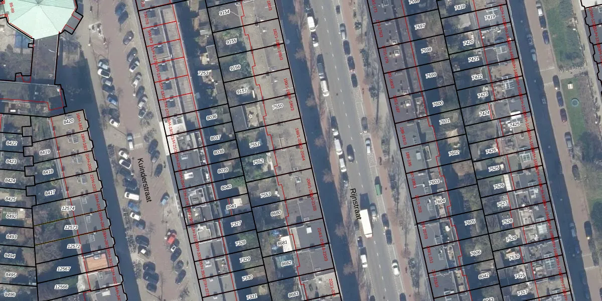 Rijnstraat 202 is gelegen op kadastraal perceel ASD18V7552. Deze kadastrale aanduiding is uniek en wordt gebruikt door het Kadaster om eigendomsrechten en andere zakelijke rechten vast te leggen. Het perceel maakt onderdeel uit van de kadastrale gemeente Amsterdam.