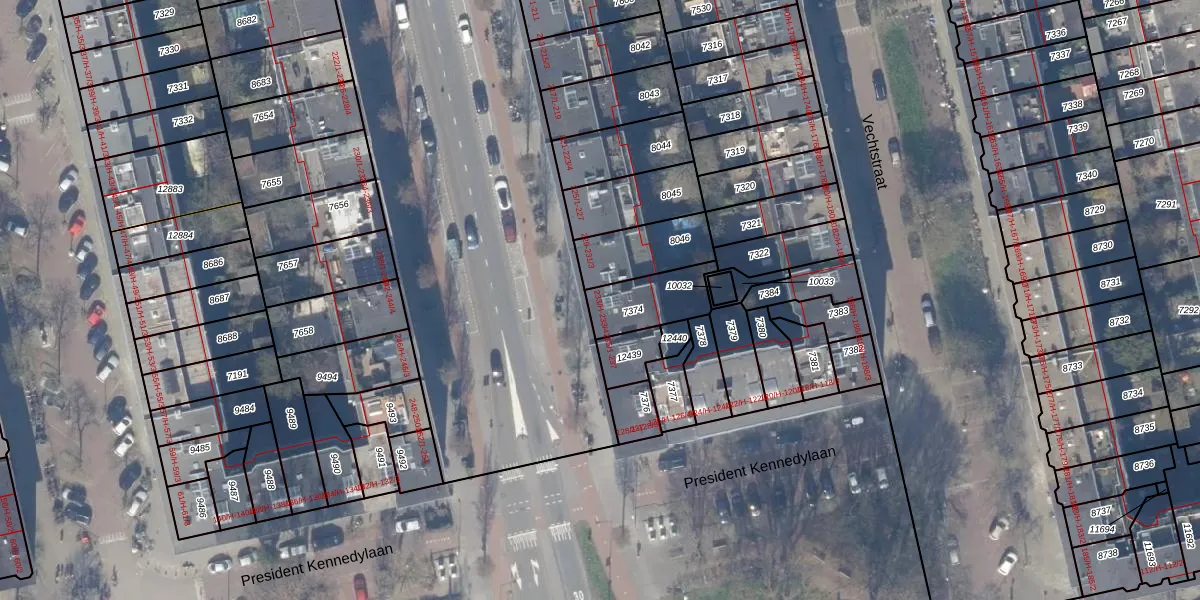 Het adres is gelegen op perceel 7374 in de sectie V en de kadastrale gemeente Amsterdam. De kadastrale aanduiding is aldus ASD18-V-7374. De gemiddelde perceelgrootte in Amsterdam is 558,8 m². Dit perceel is kleiner: de perceeloppervlakte bedraagt 174 m². Het kleinste perceel in de kadastrale gemeente is 0 m² groot. De grootste perceeloppervlakte is 12,5 ha. Er zijn 5 adressen aanwezig op het perceel. De huidige grenzen van het perceel zijn digitaal in de Basisregistratie Kadaster (BRK) geregistreerd op 05-08-2016.