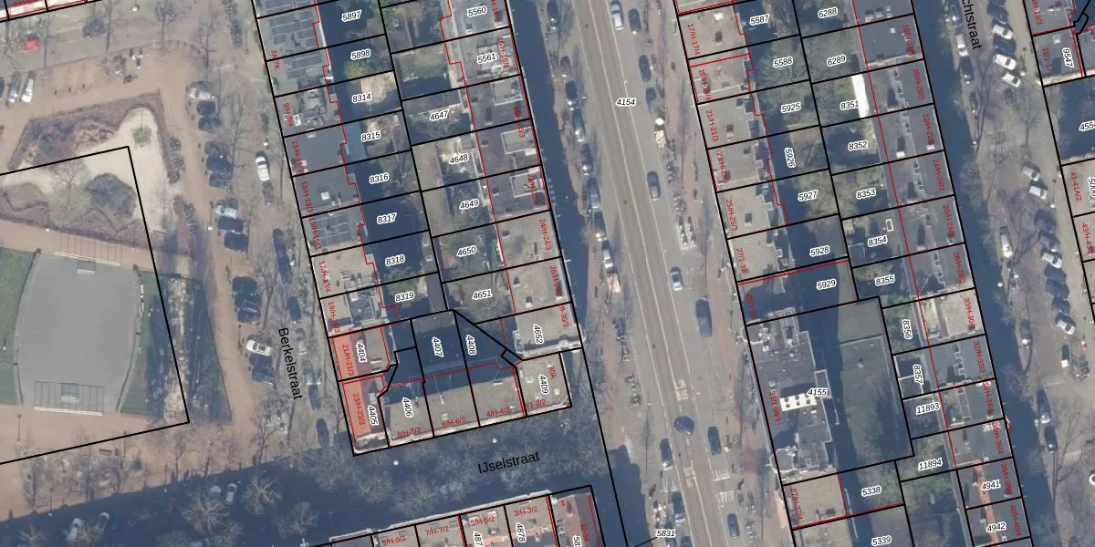 Het perceel waarop het adres ligt is ASD18-V-4651. De afkorting 'ASD18' staat voor kadastrale gemeente Amsterdam. Het perceel is 186 m² groot. Dat is kleiner dan de gemiddelde perceeloppervlakte in Amsterdam, dat op 558,8 m² ligt. Het kleinste perceel in de kadastrale gemeente is 0 m² groot. De grootste perceeloppervlakte is 12,5 ha. Er zijn 5 adressen aanwezig op het perceel. De laatste wijziging in het de Basisregistratie Kadaster (BRK) was op 06-10-2006.
