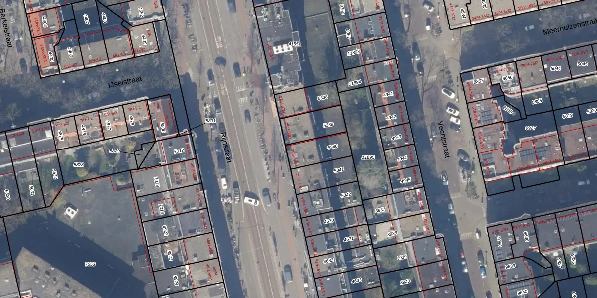 Rijnstraat 41-1 is gelegen op kadastraal perceel ASD18V5340. Deze kadastrale aanduiding is uniek en wordt gebruikt door het Kadaster om eigendomsrechten en andere zakelijke rechten vast te leggen. Het perceel maakt onderdeel uit van de kadastrale gemeente Amsterdam.