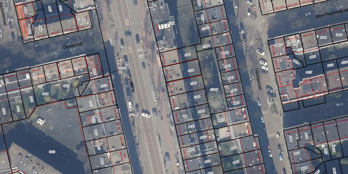 Rijnstraat 41-4 is gelegen op kadastraal perceel ASD18V5340. Deze kadastrale aanduiding is uniek en wordt gebruikt door het Kadaster om eigendomsrechten en andere zakelijke rechten vast te leggen. Het perceel maakt onderdeel uit van de kadastrale gemeente Amsterdam.