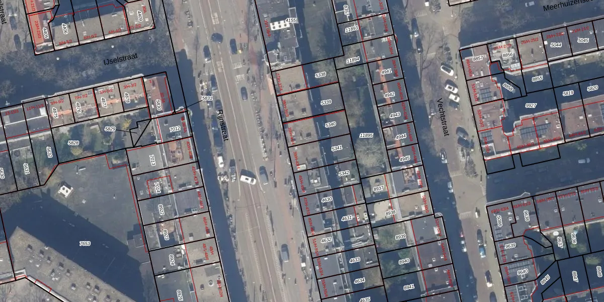 Rijnstraat 43-3 is gelegen op kadastraal perceel ASD18V5341. Deze kadastrale aanduiding is uniek en wordt gebruikt door het Kadaster om eigendomsrechten en andere zakelijke rechten vast te leggen. Het perceel maakt onderdeel uit van de kadastrale gemeente Amsterdam.