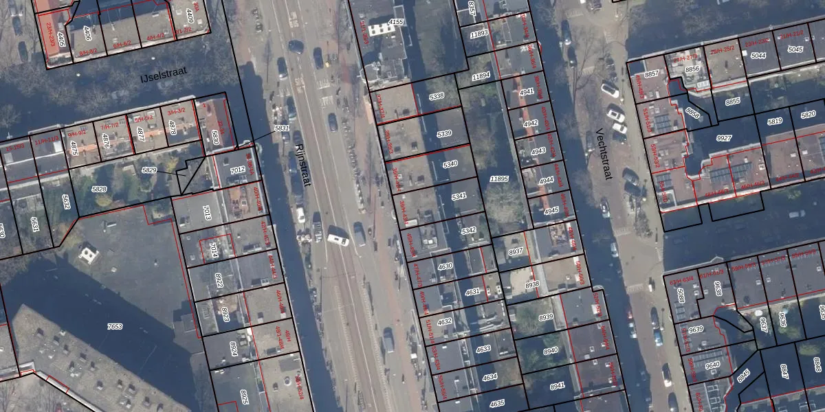 Rijnstraat 43-4 is gelegen op kadastraal perceel ASD18V5341. Deze kadastrale aanduiding is uniek en wordt gebruikt door het Kadaster om eigendomsrechten en andere zakelijke rechten vast te leggen. Het perceel maakt onderdeel uit van de kadastrale gemeente Amsterdam.