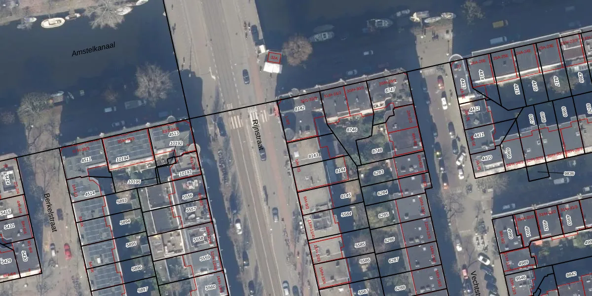 Rijnstraat 5-3 is gelegen op kadastraal perceel ASD18V8143. Deze kadastrale aanduiding is uniek en wordt gebruikt door het Kadaster om eigendomsrechten en andere zakelijke rechten vast te leggen. Het perceel maakt onderdeel uit van de kadastrale gemeente Amsterdam.