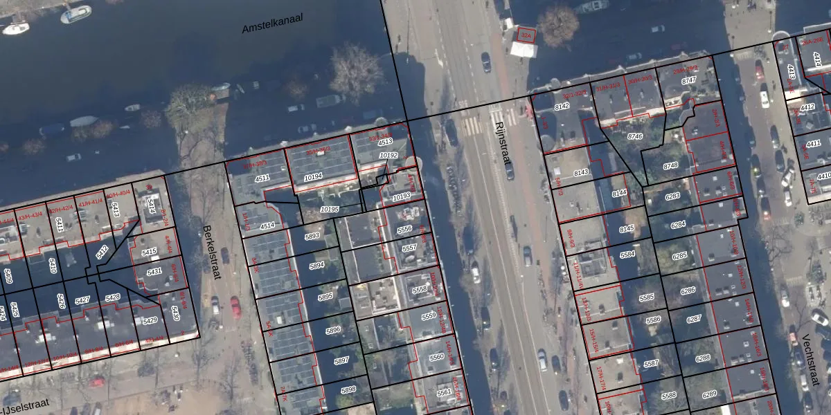Rijnstraat 6-3 is gelegen op kadastraal perceel ASD18V5556. Deze kadastrale aanduiding is uniek en wordt gebruikt door het Kadaster om eigendomsrechten en andere zakelijke rechten vast te leggen. Het perceel maakt onderdeel uit van de kadastrale gemeente Amsterdam.