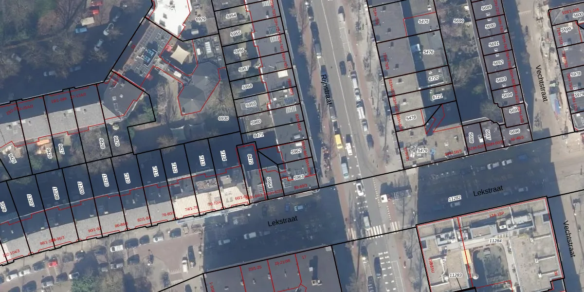 Het perceel waarop het adres ligt is ASD18-V-5962. De afkorting 'ASD18' staat voor kadastrale gemeente Amsterdam. Het perceel is kleiner dan gemiddeld in Amsterdam. Het perceel is 94 m² groot, terwijl het gemiddelde ligt op 558,8 m². Het grootste perceel in de kadastrale gemeente is 12,5 ha. Het kleinste perceel heeft een oppervlakte van 0 m². Er zijn 4 adressen aanwezig op het perceel. De laatste wijziging in het de Basisregistratie Kadaster (BRK) was op 26-09-2006.