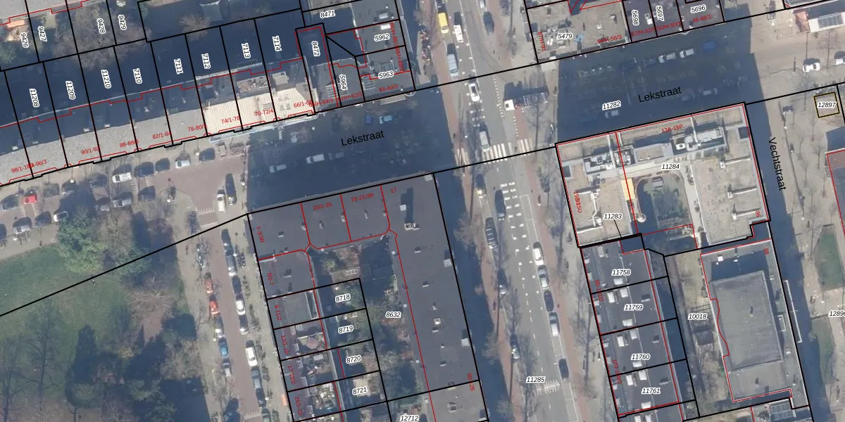 Het perceel waarop het adres ligt is ASD18-V-8632. De afkorting 'ASD18' staat voor kadastrale gemeente Amsterdam. De gemiddelde perceeloppervlakte in de kadastrale gemeente Amsterdam is 558,8 m². Dit perceel is met zijn 1596 m² dus groter dan gemiddeld. Het grootste perceel in de kadastrale gemeente is 12,5 ha. Het kleinste perceel heeft een oppervlakte van 0 m². Op het perceel zijn 45 adressen aanwezig. In de Basisregistratie Kadaster (BRK) werden de grenzen van het perceel geregistreerd op 22-11-2006.