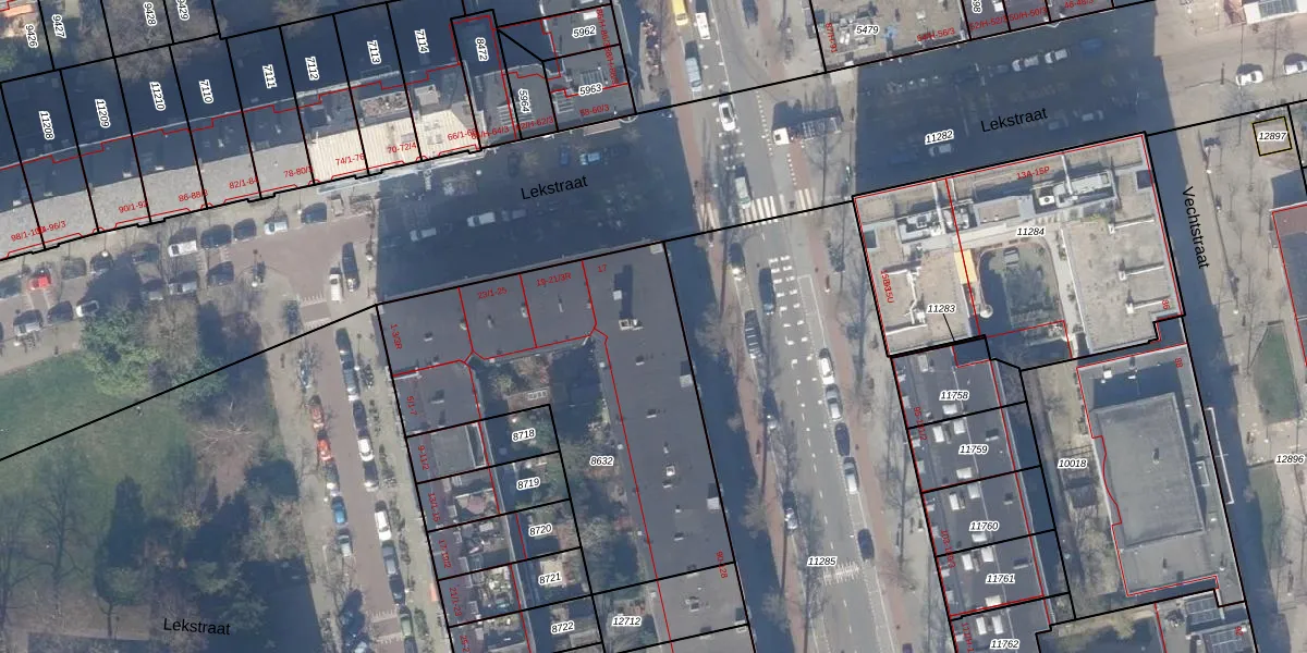 Het perceel waarop het adres ligt is ASD18-V-8632. De afkorting 'ASD18' staat voor kadastrale gemeente Amsterdam. De gemiddelde perceeloppervlakte in de kadastrale gemeente Amsterdam is 558,8 m². Dit perceel is met zijn 1596 m² dus groter dan gemiddeld. Het grootste perceel in de kadastrale gemeente is 12,5 ha. Het kleinste perceel heeft een oppervlakte van 0 m². Op het perceel liggen in totaal 45 adressen. De huidige grenzen van het perceel zijn digitaal in de Basisregistratie Kadaster (BRK) geregistreerd op 22-11-2006.