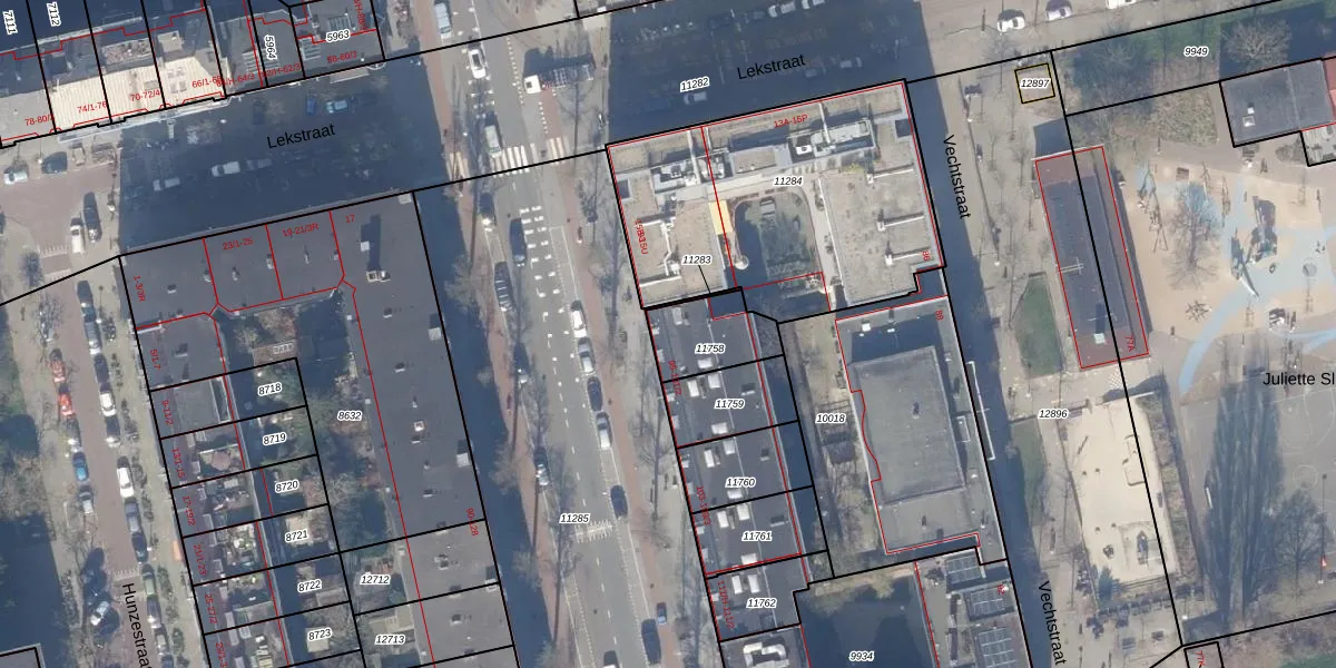 Het adres is gelegen op perceel 11758 in de sectie V en de kadastrale gemeente Amsterdam. De kadastrale aanduiding is aldus ASD18-V-11758. Het perceel is kleiner dan gemiddeld in Amsterdam. Het perceel is 188 m² groot, terwijl het gemiddelde ligt op 558,8 m². Het kleinste perceel in de kadastrale gemeente is 0 m² groot. De grootste perceeloppervlakte is 12,5 ha. Op het perceel zijn 5 adressen aanwezig. In de Basisregistratie Kadaster (BRK) werden de grenzen van het perceel geregistreerd op 30-03-2010.