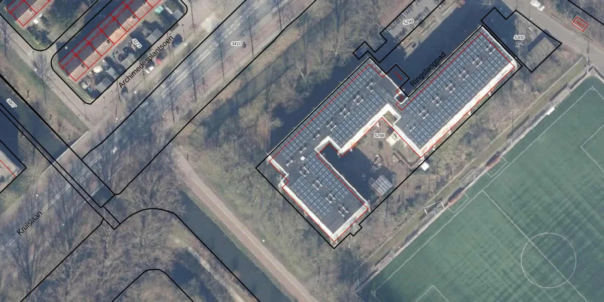 Het perceel waarop Ringslangpad 252 staat heeft een oppervlakte van 2643 m². Dit is een zeer groot perceel. De perceeloppervlakte wordt geregistreerd door het Kadaster. Gedetailleerde informatie over de maten van dit perceel kunt u vinden in het rapport Kadastrale kaart met maatvoering van Ringslangpad 252.