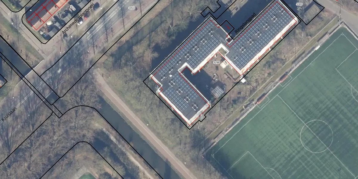 Het perceel waarop Ringslangpad 336 staat heeft een oppervlakte van 2643 m². Dit is een zeer groot perceel. De perceeloppervlakte wordt geregistreerd door het Kadaster. Gedetailleerde informatie over de maten van dit perceel kunt u vinden in het rapport Kadastrale kaart met maatvoering van Ringslangpad 336.