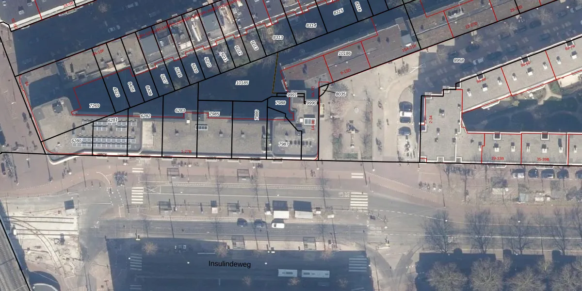 Het adres is gelegen op perceel 7987 in de sectie S en de kadastrale gemeente Amsterdam. De kadastrale aanduiding is aldus ASD15-S-7987. Het perceel is kleiner dan gemiddeld in Amsterdam. Het perceel is 173 m² groot, terwijl het gemiddelde ligt op 537,06 m². De grootste perceeloppervlakte in de kadastrale gemeente is 14,5 ha. De kleinste oppervlakte bedraagt 0 m². Op het perceel liggen in totaal 8 adressen. In de Basisregistratie Kadaster (BRK) werden de grenzen van het perceel geregistreerd op 05-02-2007.