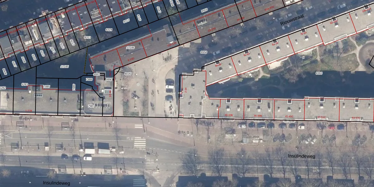 Riouwstraat 10 is gelegen op kadastraal perceel ASD15S8393. Deze kadastrale aanduiding is uniek en wordt gebruikt door het Kadaster om eigendomsrechten en andere zakelijke rechten vast te leggen. Het perceel maakt onderdeel uit van de kadastrale gemeente Amsterdam.