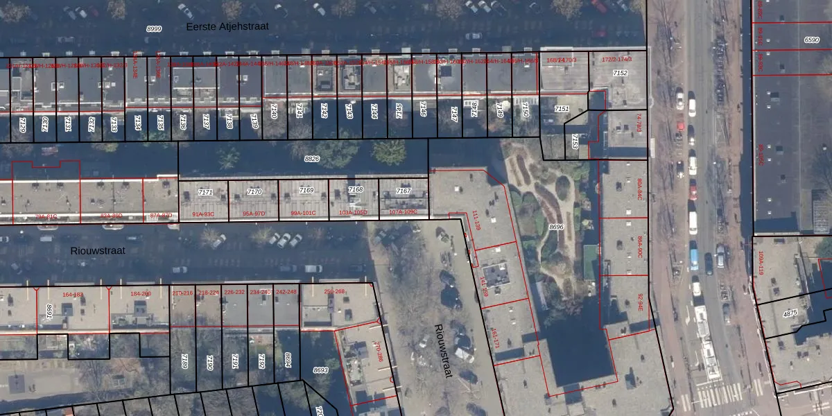 Het perceel waarop Riouwstraat 107-E staat heeft een oppervlakte van 120 m². Dit is een middelgroot perceel. De perceeloppervlakte wordt geregistreerd door het Kadaster. Gedetailleerde informatie over de maten van dit perceel kunt u vinden in het rapport Kadastrale kaart met maatvoering van Riouwstraat 107-E.
