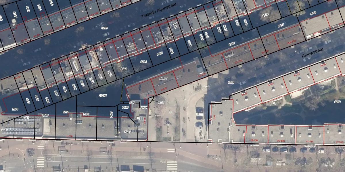 Riouwstraat 11-A is gelegen op kadastraal perceel ASD15S10186. Deze kadastrale aanduiding is uniek en wordt gebruikt door het Kadaster om eigendomsrechten en andere zakelijke rechten vast te leggen. Het perceel maakt onderdeel uit van de kadastrale gemeente Amsterdam.