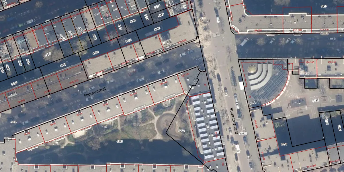 Het perceel waarop Riouwstraat 118 staat heeft een oppervlakte van 5255 m². Dit is een zeer groot perceel. De perceeloppervlakte wordt geregistreerd door het Kadaster. Gedetailleerde informatie over de maten van dit perceel kunt u vinden in het rapport Kadastrale kaart met maatvoering van Riouwstraat 118.
