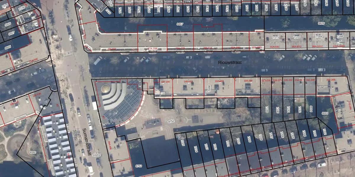 Het perceel waarop Riouwstraat 148 staat heeft een oppervlakte van 950 m². Dit is een groot perceel. De perceeloppervlakte wordt geregistreerd door het Kadaster. Gedetailleerde informatie over de maten van dit perceel kunt u vinden in het rapport Kadastrale kaart met maatvoering van Riouwstraat 148.