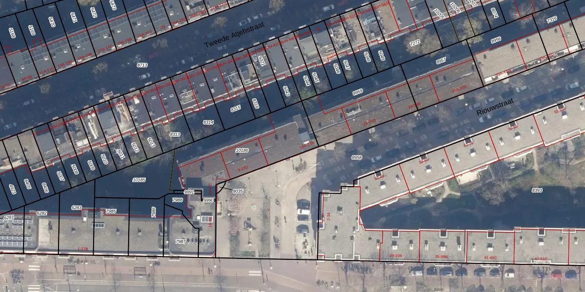 Het perceel waarop Riouwstraat 15-K staat heeft een oppervlakte van 829 m². Dit is een groot perceel. De perceeloppervlakte wordt geregistreerd door het Kadaster. Gedetailleerde informatie over de maten van dit perceel kunt u vinden in het rapport Kadastrale kaart met maatvoering van Riouwstraat 15-K.