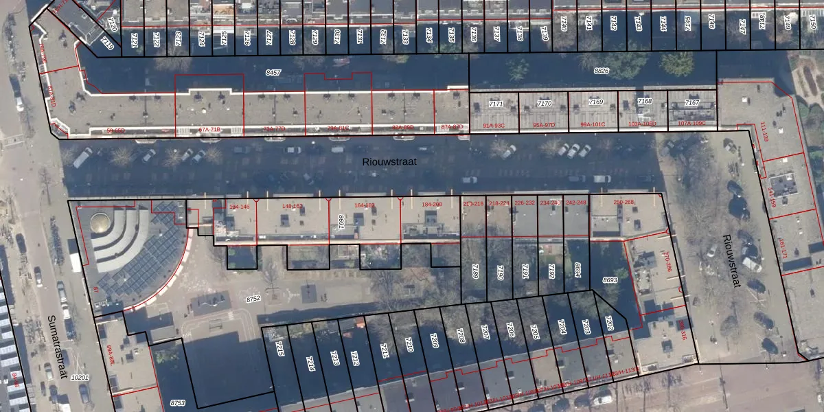 Het perceel waarop Riouwstraat 196 staat heeft een oppervlakte van 950 m². Dit is een groot perceel. De perceeloppervlakte wordt geregistreerd door het Kadaster. Gedetailleerde informatie over de maten van dit perceel kunt u vinden in het rapport Kadastrale kaart met maatvoering van Riouwstraat 196.