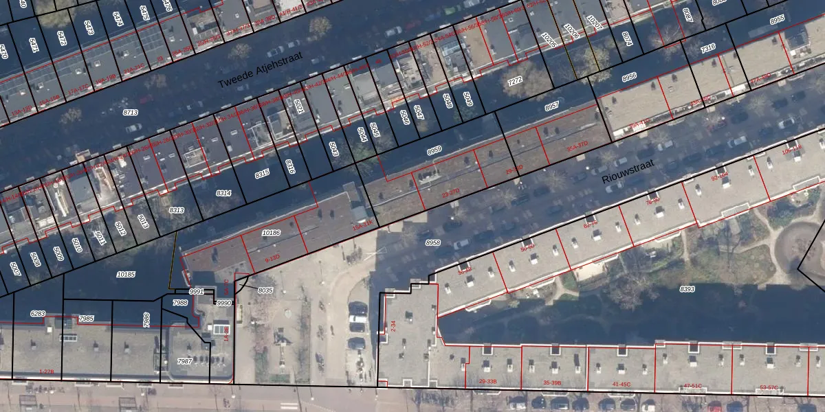 Het perceel waarop Riouwstraat 21-H staat heeft een oppervlakte van 611 m². Dit is een groot perceel. De perceeloppervlakte wordt geregistreerd door het Kadaster. Gedetailleerde informatie over de maten van dit perceel kunt u vinden in het rapport Kadastrale kaart met maatvoering van Riouwstraat 21-H.