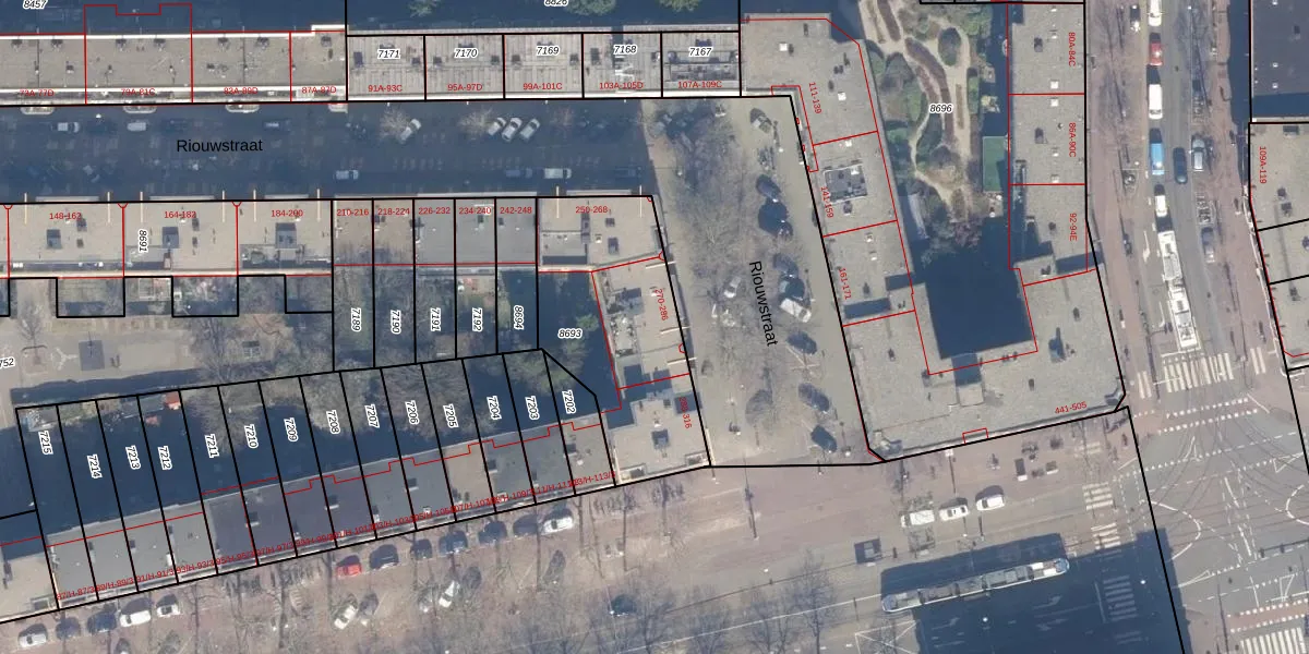 Het perceel waarop Riouwstraat 280 staat heeft een oppervlakte van 785 m². Dit is een groot perceel. De perceeloppervlakte wordt geregistreerd door het Kadaster. Gedetailleerde informatie over de maten van dit perceel kunt u vinden in het rapport Kadastrale kaart met maatvoering van Riouwstraat 280.