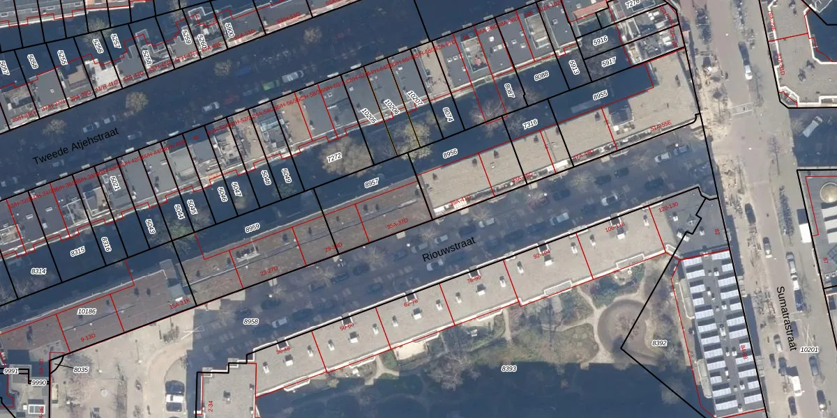 Het perceel waarop Riouwstraat 37-D staat heeft een oppervlakte van 408 m². Dit is een groot perceel. De perceeloppervlakte wordt geregistreerd door het Kadaster. Gedetailleerde informatie over de maten van dit perceel kunt u vinden in het rapport Kadastrale kaart met maatvoering van Riouwstraat 37-D.