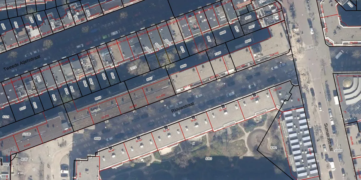 Het perceel waarop Riouwstraat 39-A staat heeft een oppervlakte van 416 m². Dit is een groot perceel. De perceeloppervlakte wordt geregistreerd door het Kadaster. Gedetailleerde informatie over de maten van dit perceel kunt u vinden in het rapport Kadastrale kaart met maatvoering van Riouwstraat 39-A.