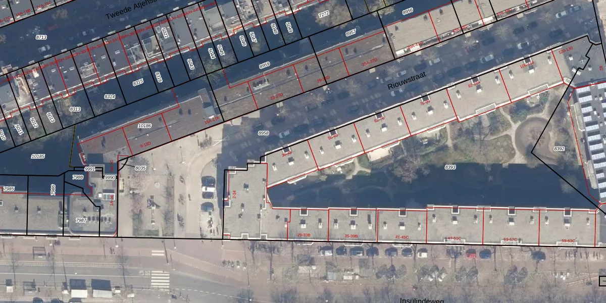 Riouwstraat 40 is gelegen op kadastraal perceel ASD15S8393. Deze kadastrale aanduiding is uniek en wordt gebruikt door het Kadaster om eigendomsrechten en andere zakelijke rechten vast te leggen. Het perceel maakt onderdeel uit van de kadastrale gemeente Amsterdam.